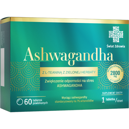 Ashwagandha Z L- TEANINĄ Z ZIELONEJ HERBATY 60 tabletek powlekanych