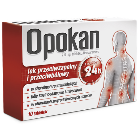 Ten lek należy zawsze przyjmować dokładnie tak, jak to opisano w tej ulotce dla pacjenta lub według zaleceń lekarza lub farmaceuty. W razie wątpliwości należy zwrócić się do lekarza lub farmaceuty. Zalecana dawka Zalecana dawka to 1 tabletka (7,5 mg) na dobę. Osoby w podeszłym wieku: 1 tabletka (7,5 mg) na dobę. Pacjenci ze zwiększonym ryzykiem wystąpienia działań niepożądanych, pacjenci z niewydolnością nerek, pacjenci z niewydolnością wątroby: nie należy przekraczać dawki 7,5 mg na dobę. Stosowanie u dzieci i młodzieży: nie należy stosować leku Opokan u dzieci i młodzieży w wieku poniżej 16 lat. Sposób podawania: • Lek przyjmuje się doustnie podczas posiłku, popijając wodą. • Opokan należy przyjmować raz na dobę (w dawce jednorazowej). Jeśli objawy nasilą się lub nie ustąpią po 7 dniach, należy skontaktować się z lekarzem.